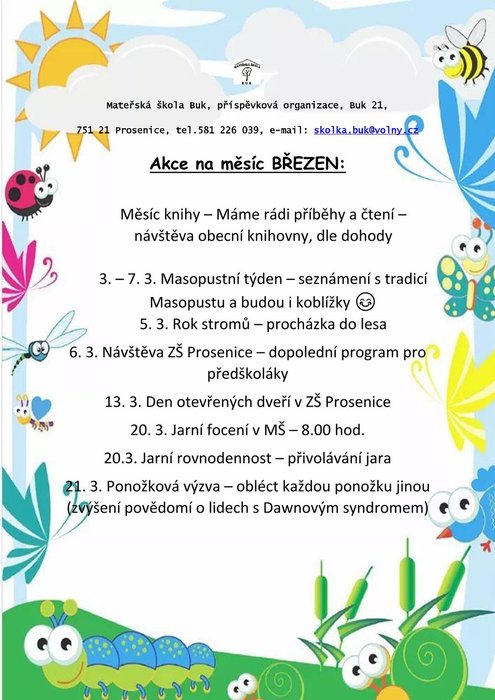 Úvod > O školce > Aktuality > Akce na měsíc BŘEZEN