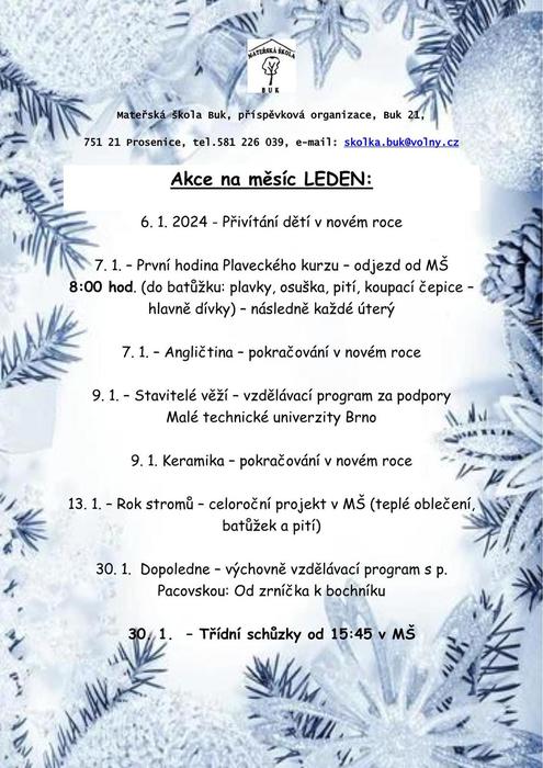 Úvod > O školce > Aktuality > Akce na měsíc LEDEN