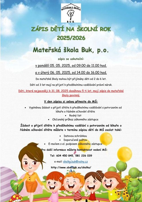 Úvod > O školce > Aktuality > Zápis do MŠ 2025