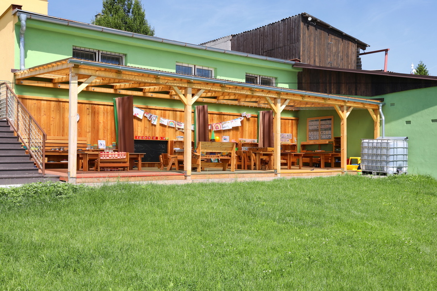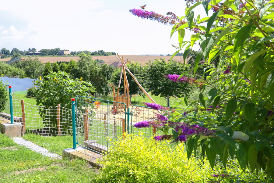 - Podmínky pro experimenty s vodou a přírodními materiály, ve venkovní kuchyňce, v pískovišti, ve vyvýšených záhonech pro péči o rostliny apod.